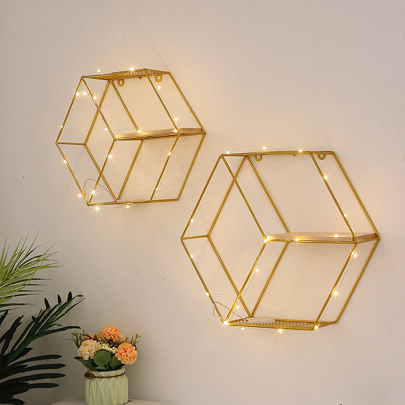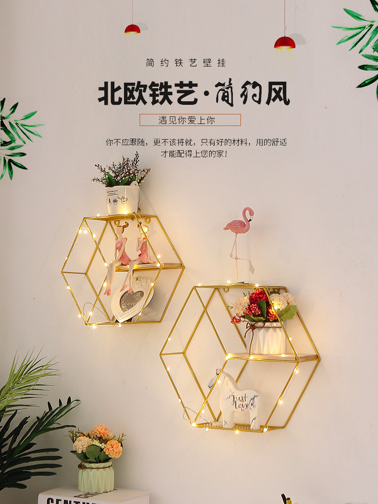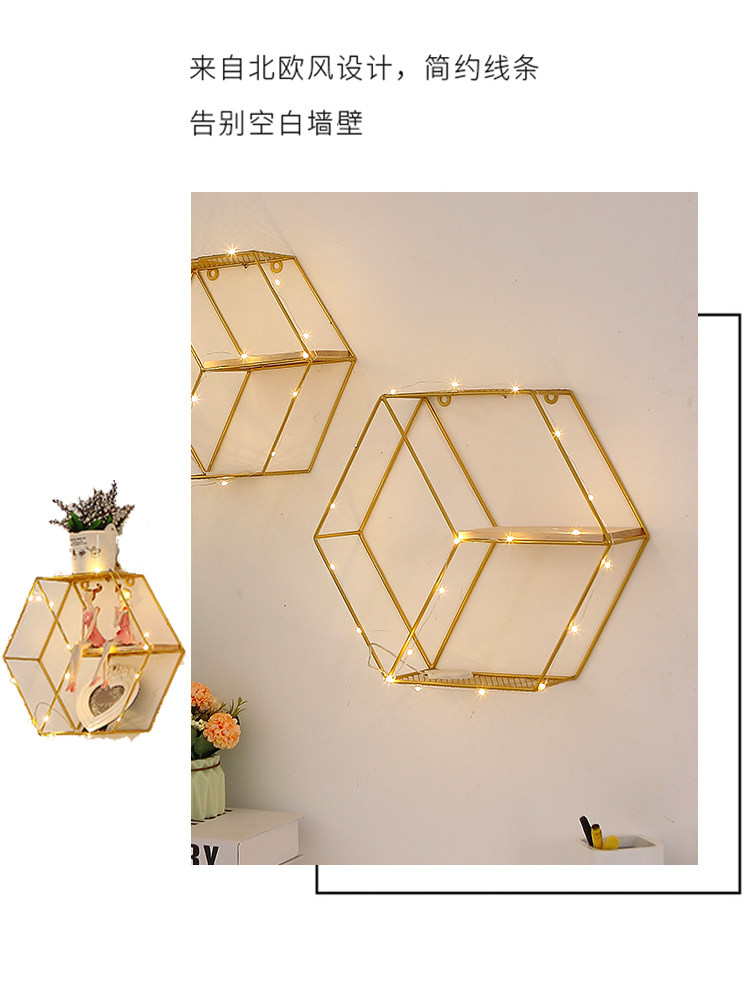 ins Nordic style bedroom room wall decoration rack wall display rack hexagonal honeycomb wall hanging