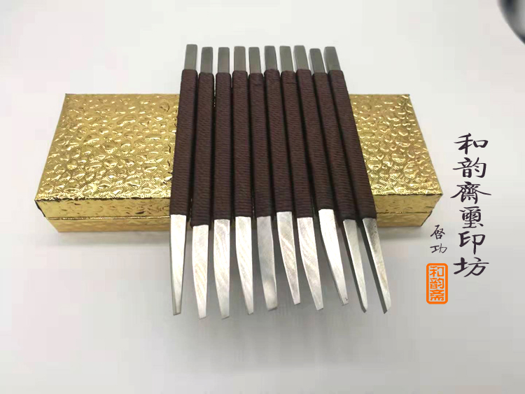 Engraved Bronze Seal Cutter 11 pieces of printed adobe stone printed material seal engraving knife and rhyme