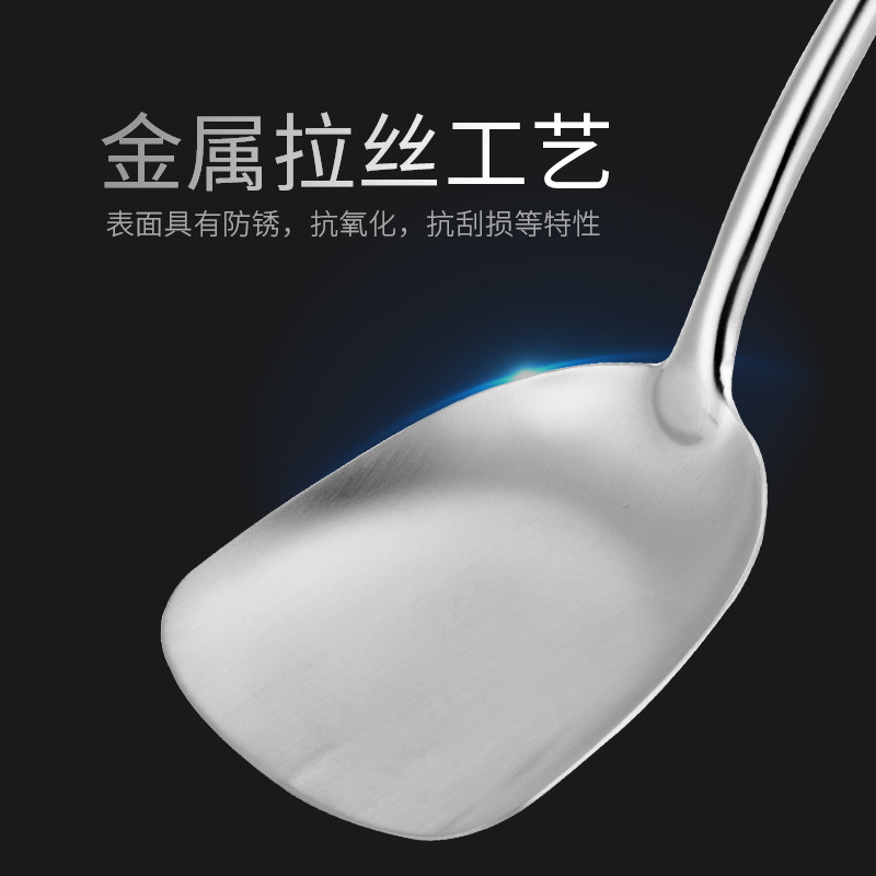 Stainless steel wok shovel thickened 304 integrated Home fried vegetable shovel Kitchen Long Handle Spoon Large Leak Spoon Suit Hanger