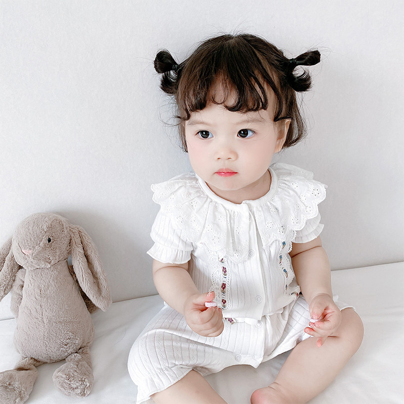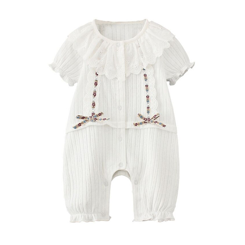 Newborn baby jumpsuit Female baby short-sleeved cotton long-sleeved romper climbing suit bow full moon clothes autumn
