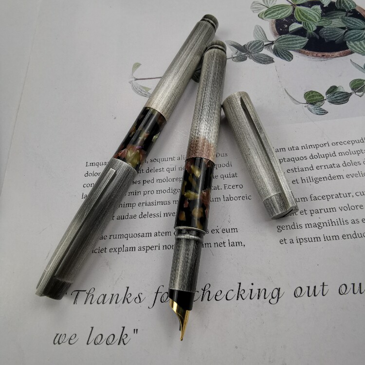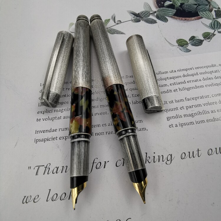 Old style Fuliven 815 pen celluloid, ancient silver retro, gold-plated half-bag tip, pure copper 31g