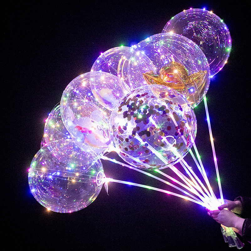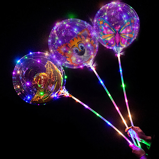 Push hot selling luminous net red ball Rose bouquet belt light explosion transparent street night Market cartoon balloon