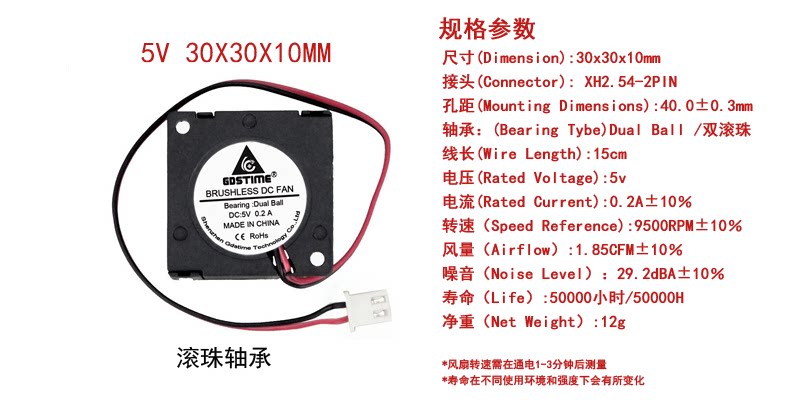 DC5v 30x30x10MM 3CM mini ultra-thin ball durable fan turbo blower