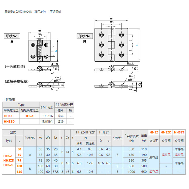 Factory Direct Selling Replacement Mithmi HHSZ50 65 75100125 Stainless Steel Heavy-duty Hinge Hinges