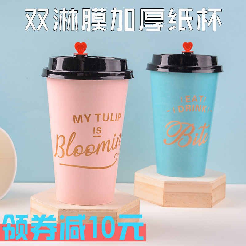 Disposable milk tea paper cups commercial 1000 can be thickened with lids for hot drink milk tea cups with iced coffee paper cups
