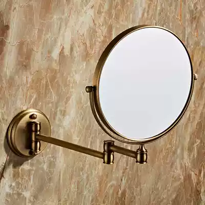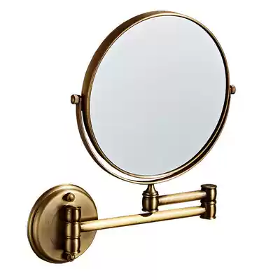 Bathroom makeup mirror folding Beauty Mirror full copper antique double mirror cosmetic room desktop mirror non-perforated wall mounted copper mirror