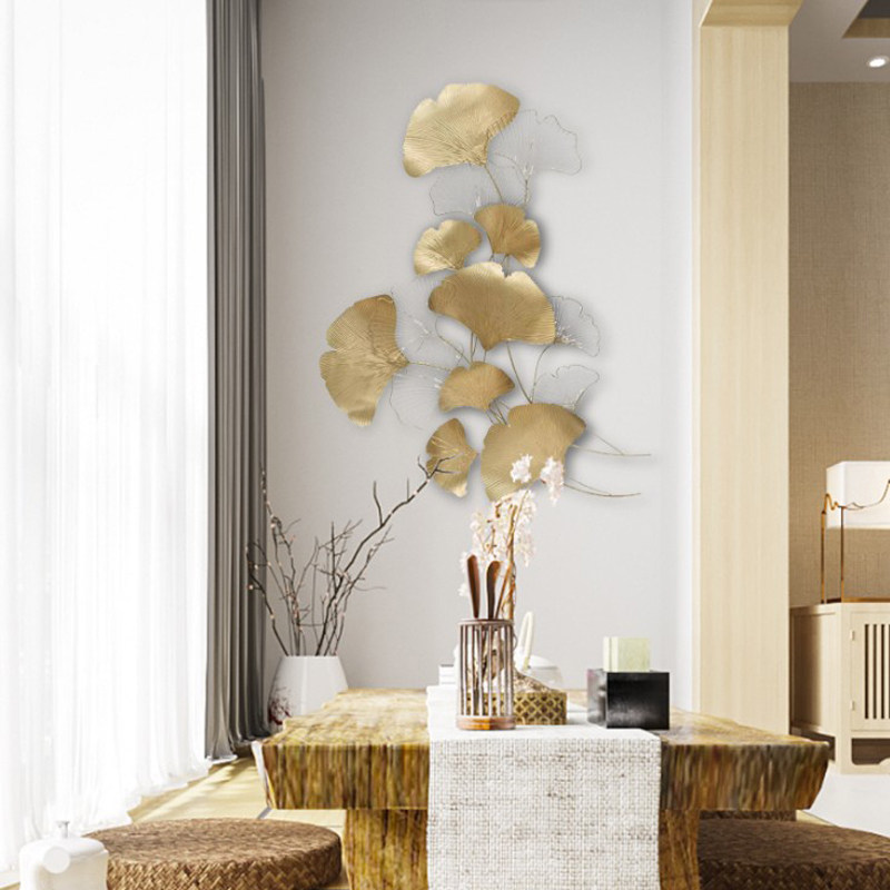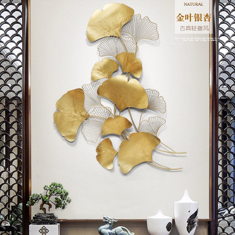 New Chinese Light Lavish Gingko Leaves Wall Decoration Metal Living Room Sofa Background Wall Decoration Creative Hotel Wall Wall-mounted Pieces