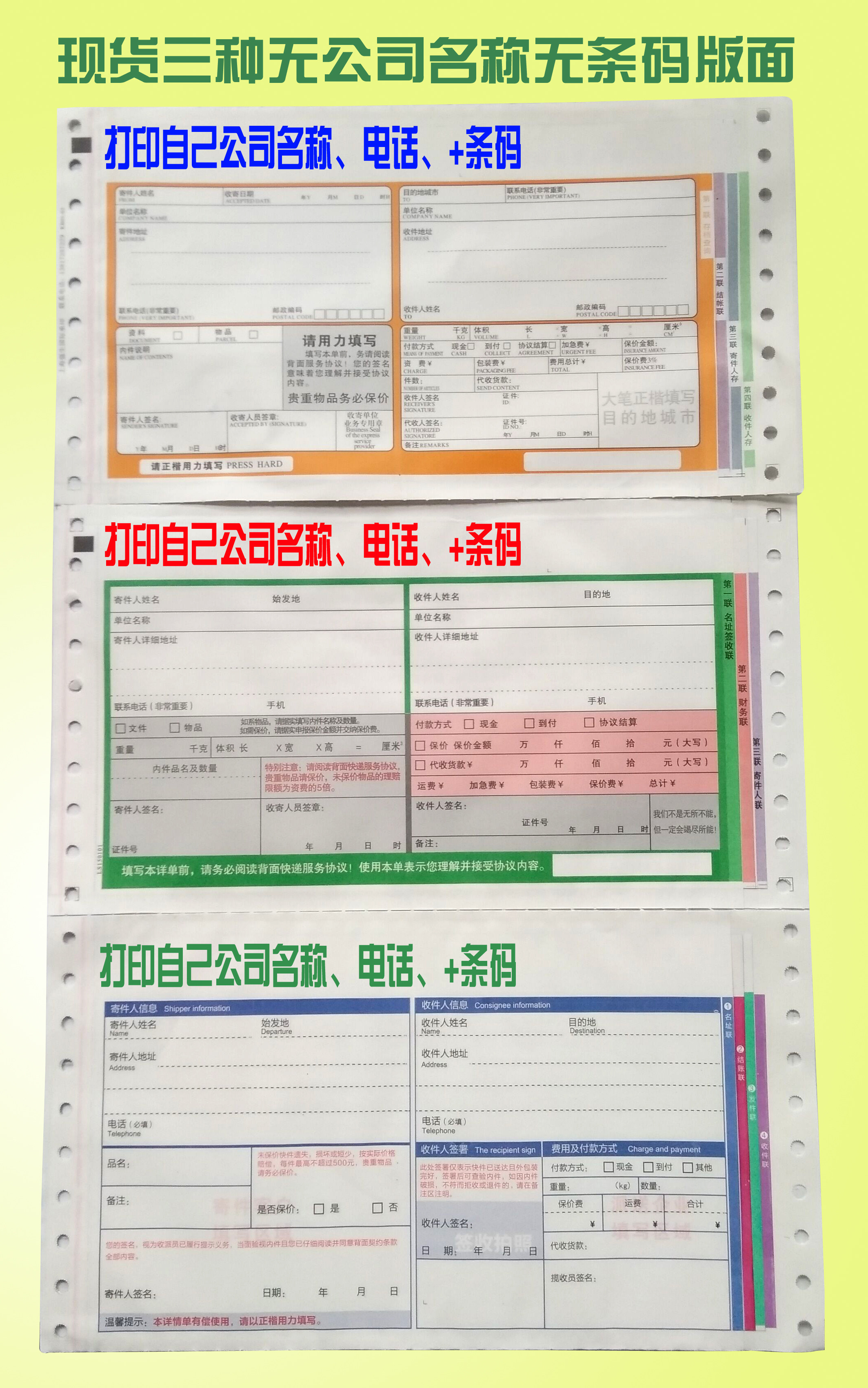 Express list handwritten list logistics consign back glue Express single city face handwritten logistics bill blank sheet