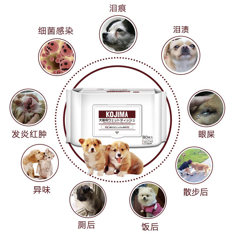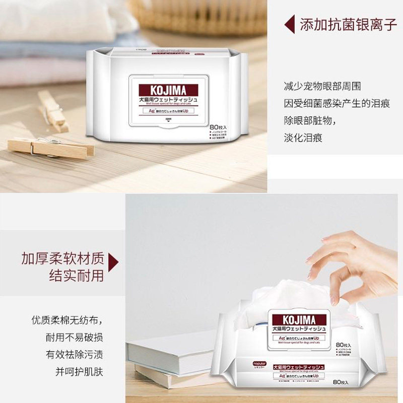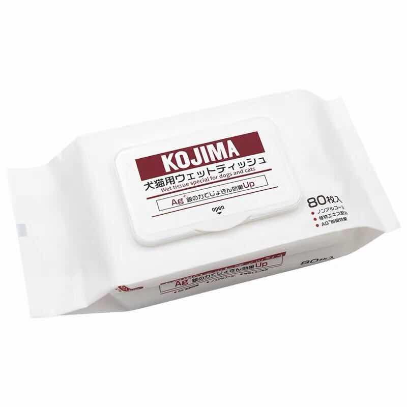 Japan KOJIMA pet wipes dog and cat silver ion wipes paper to remove tears wipes 80 pieces of pet cleaning supplies