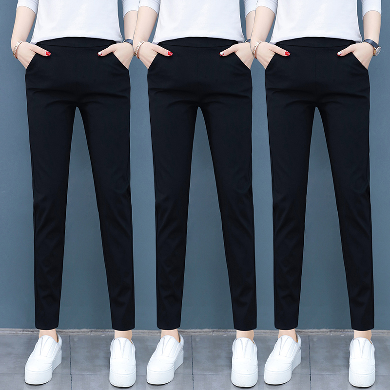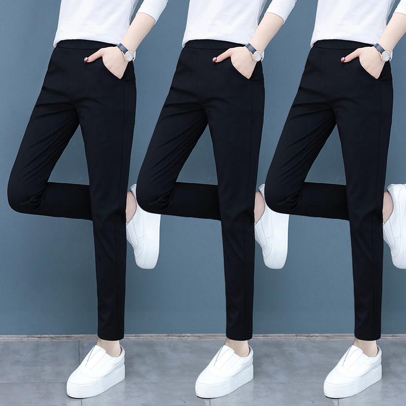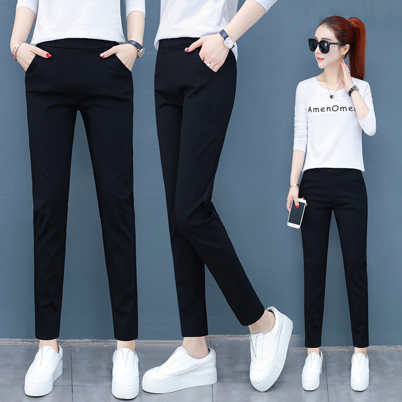 Black casual pants female loose straight tube slim pairs pants 2023 new small foot sports pants spring and autumn pure color
