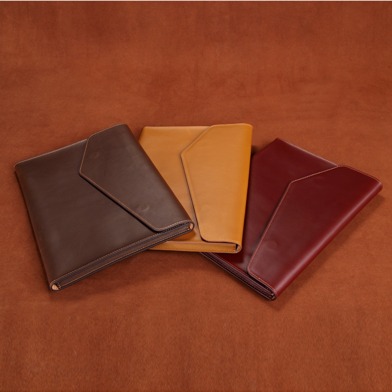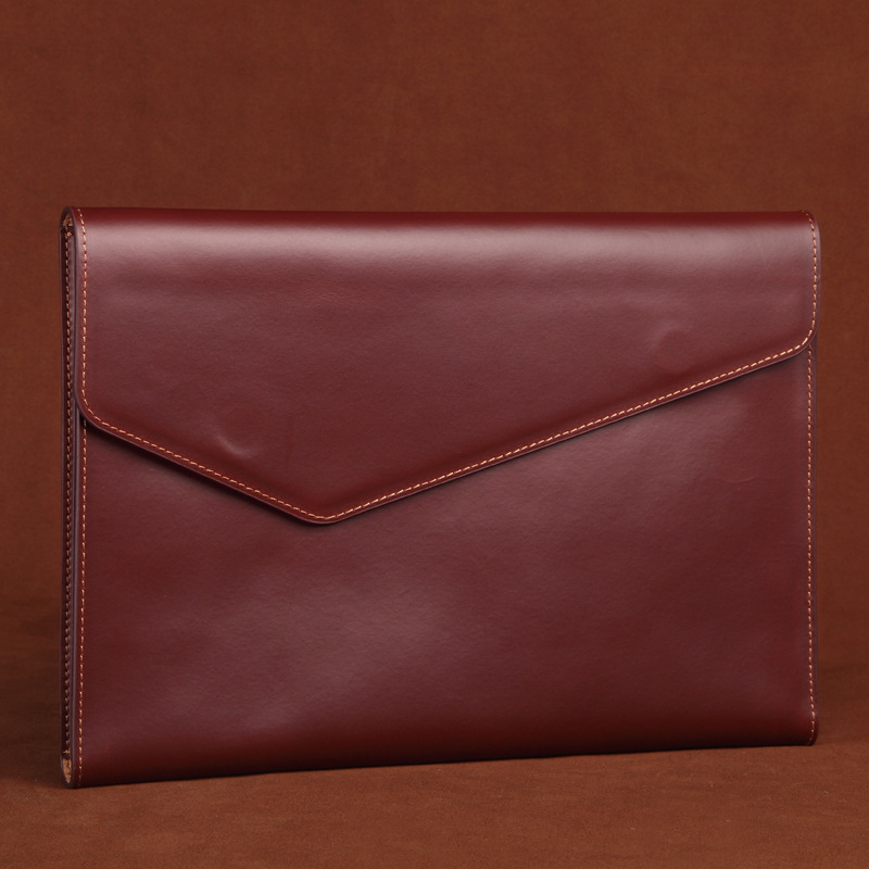 New A4 leather file bag Magnetic buckle file folder Leather file bag Simple clutch horizontal briefcase