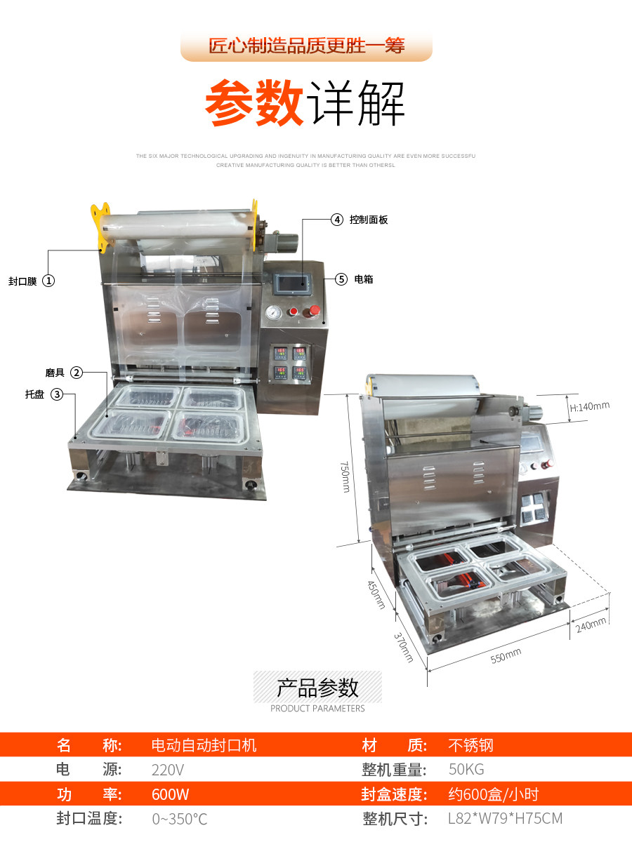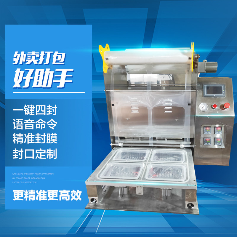 Kangxin lunch box sealing machine automatic large one-out four sealing machine factory customized lobster fresh food fast sealing