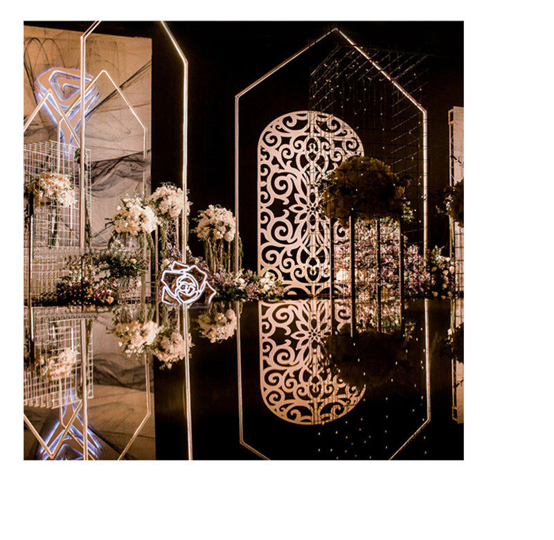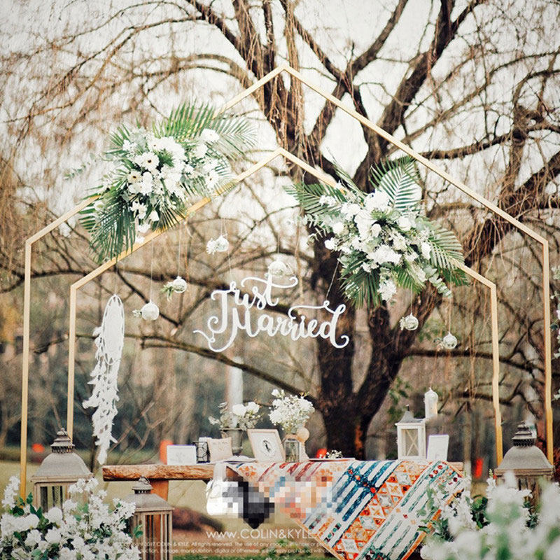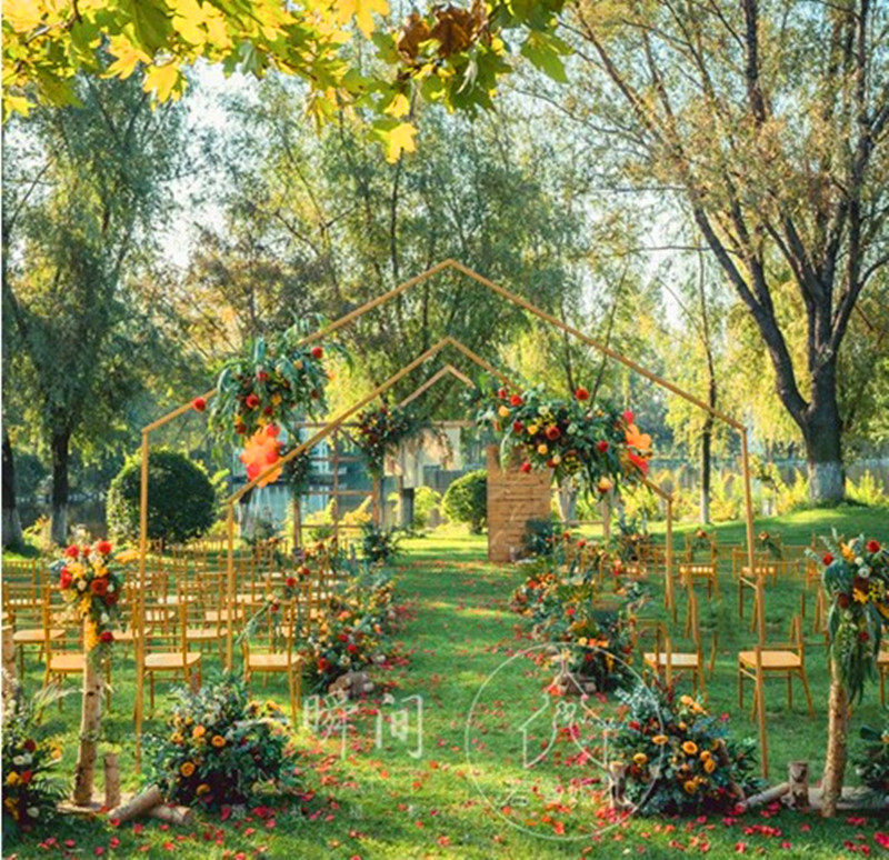 New wedding props wrought iron geometric arch shelf Mori outdoor wedding stage background layout decorative flower door