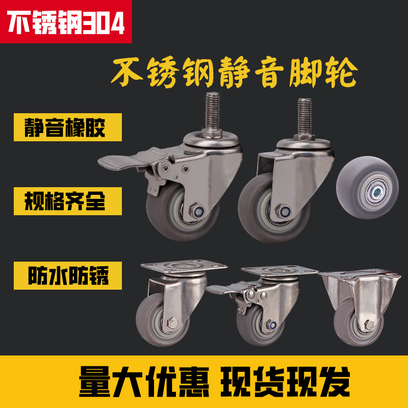 Chennuo 1 5-inch stainless steel 304 universal wheel 2-inch silent waterproof anti-rust caster rubber TPR furniture brake wheel