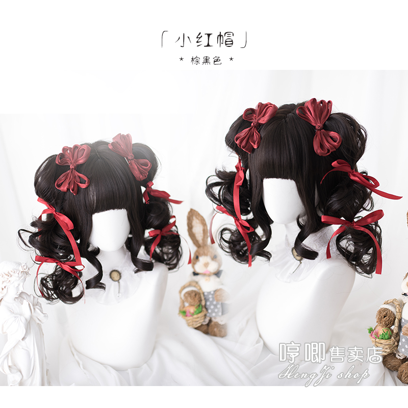 Whine Lolita Harajuku soft sister "Little Red Riding Hood" Japanese double ponytail long curly female Lolita round face wig