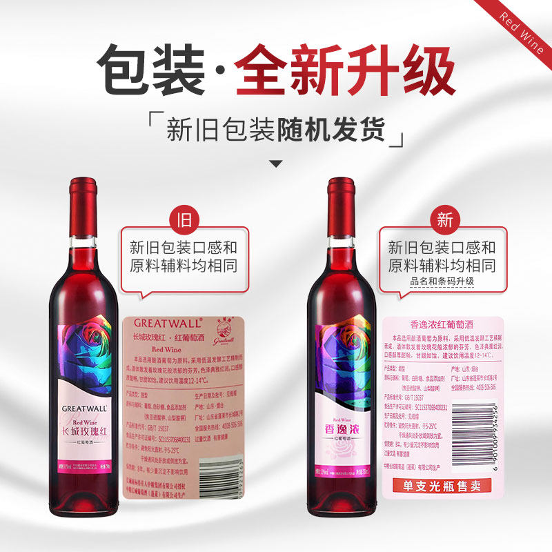 Great Wall Sweet Red Grape Wine Fragrant Wine Rose Red Lady Red Wine 2 Outfitted Sweet Wine Sending wine with 5 pieces