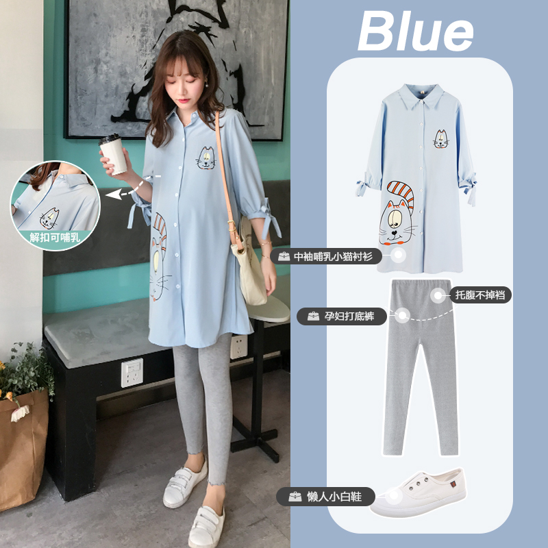 Pregnant Woman Lian Dress With Dress And Summer Dress Lactation Skirt Mesh Red Suit Fashion style Loose Big Code Gestation Woman 2021 new blouses-Taobao