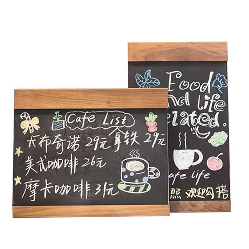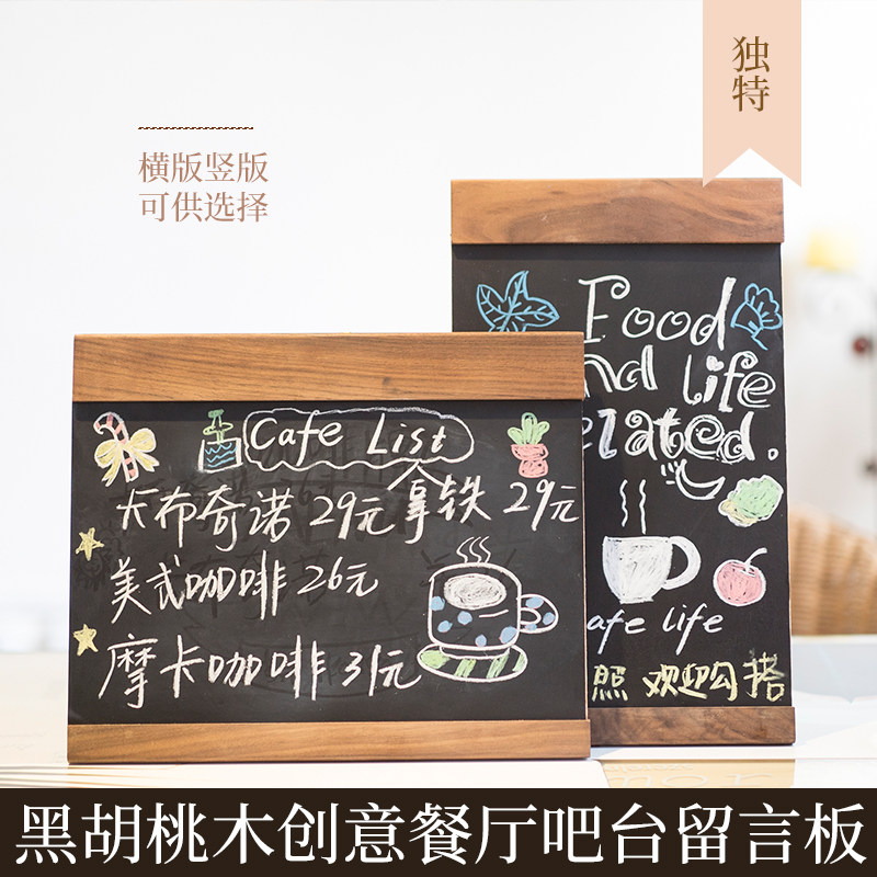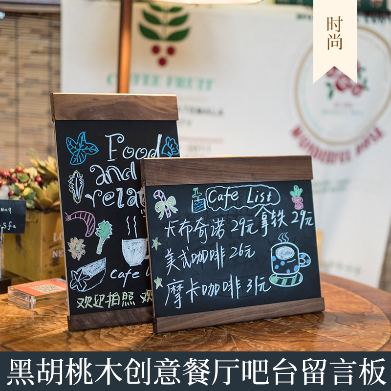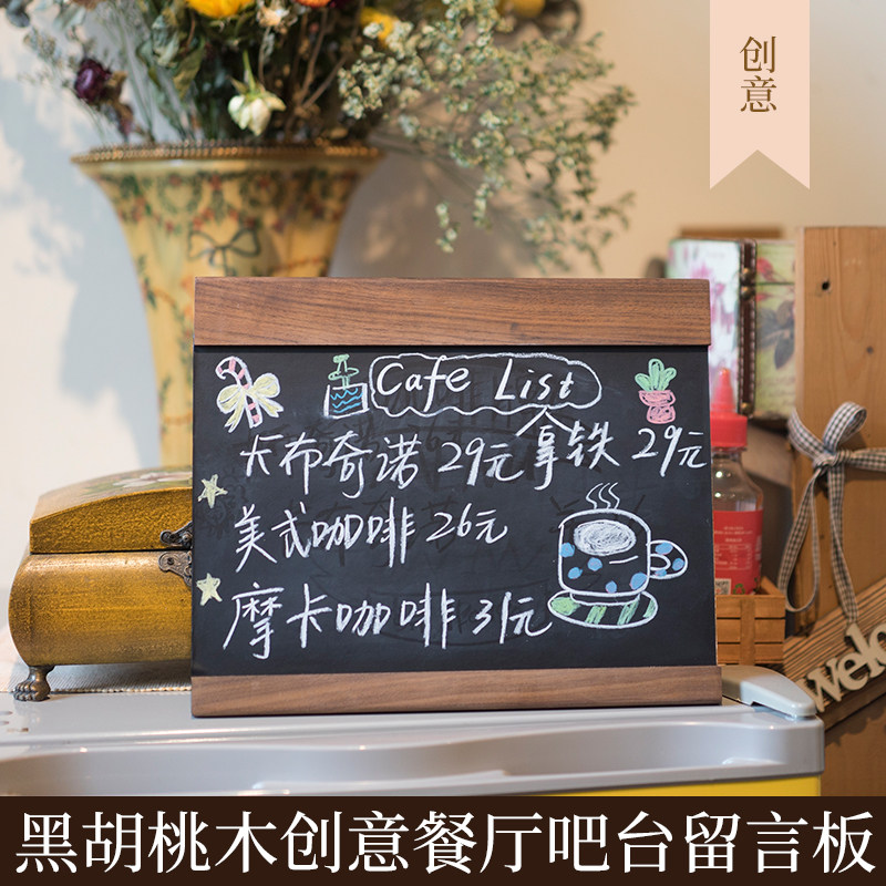 Custom Black Walnut Wood Small Chalkboard Cafe Bar Dining Room Folk Juku Table Bracket Advertising Board Home Message Board