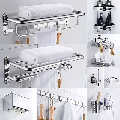 Towel rack stainless steel dressing room rack wall-mounted bathroom pendant non-perforated 304 toilet bathroom set