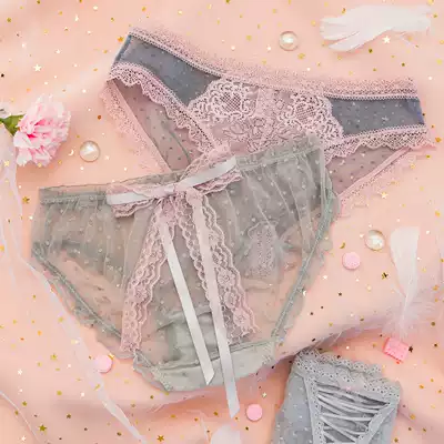 Shaqier lace big butterfly girl panties transparent quick-drying sexy medium and low waist gray briefs summer breathable