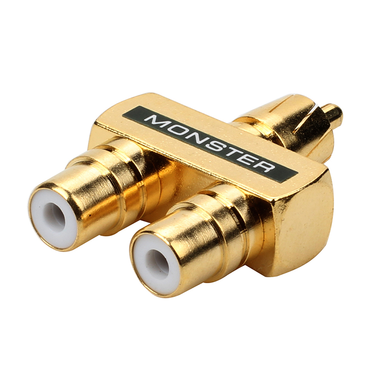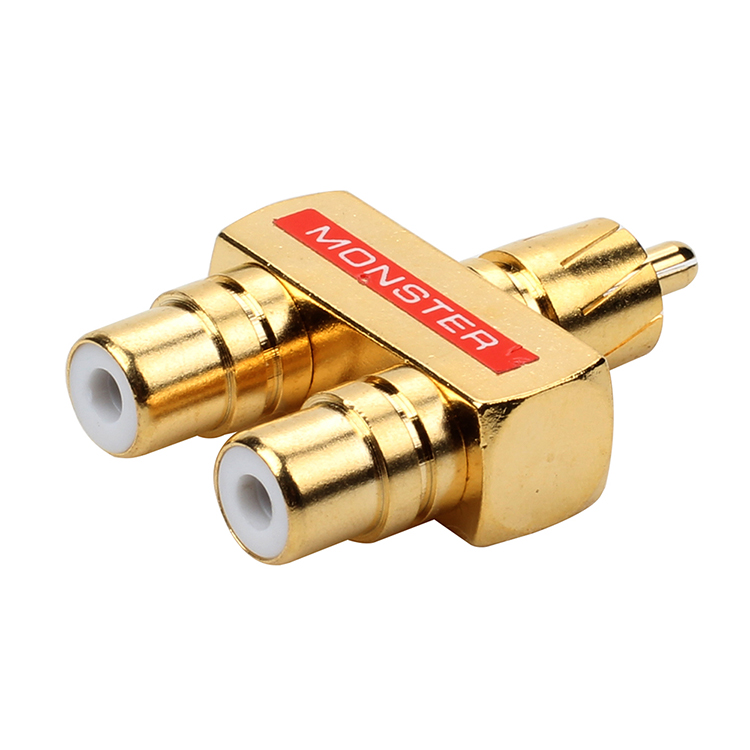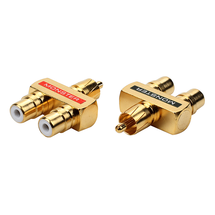 Full copper plated gold lotus tee double audio RCA 10% Two-one-male revolution mother AV adapter