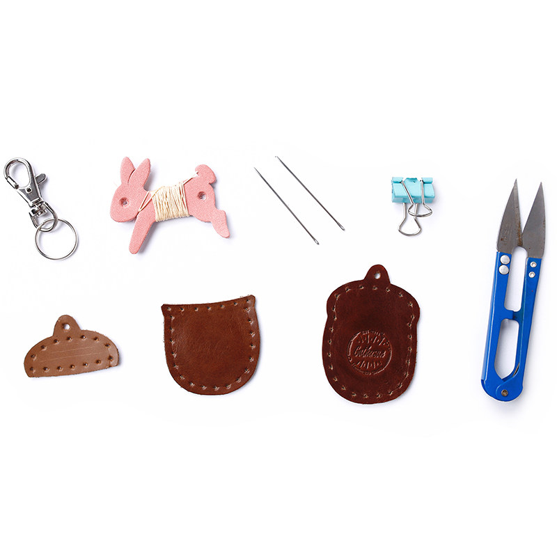 Original cowhide Creative Access card cover DIY material bag hand-sewn cartoon community card protective cover keychain