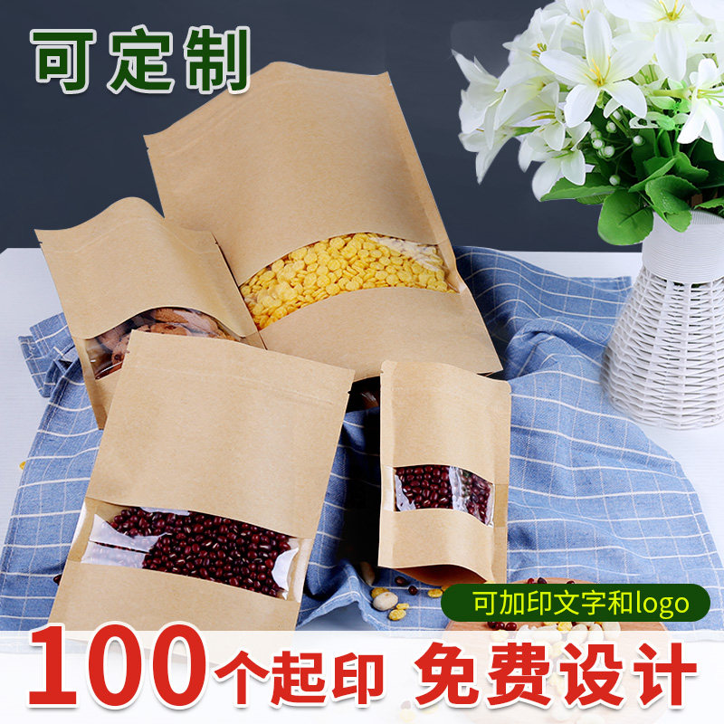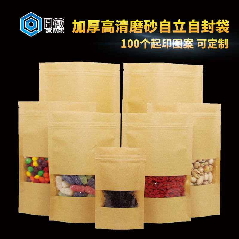 Waterproof kraft paper ziplock bag custom frosted seal thickening tea industry rice wolfberry red dates food packaging custom