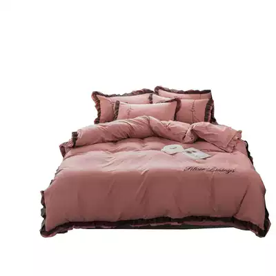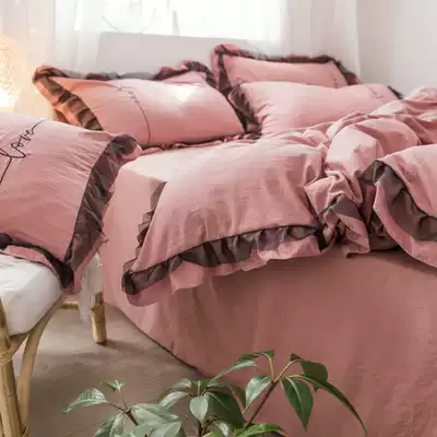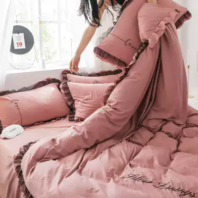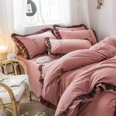 Washed cotton four-piece bedding Princess style pink bed sheet quilt cover bed sheet girl heart three-piece net red model