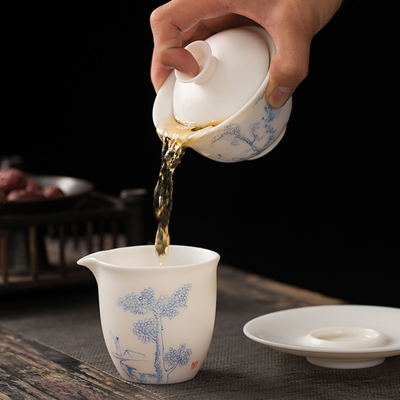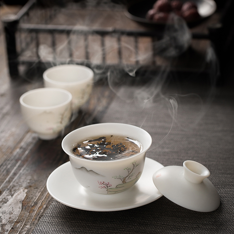 Set First hand painted sheep fat jade plum blossom set set set Second hand painted sheep fat jade Mountain water Elegant set set set three(sheep fat jade pure white set) Set Four hand painted sheep fat Jade Garden set