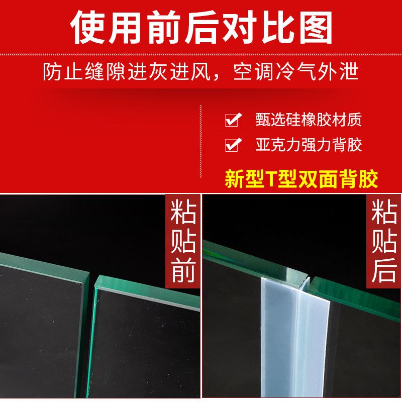 Glass door seal Door seam windproof waterproof insulation Silicone self-adhesive T-type paste frameless balcony anti-dust strip