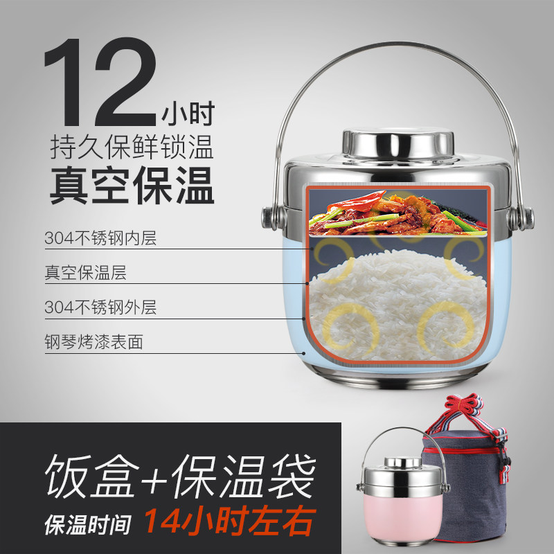 304 stainless steel insulated bento box Office workers with rice bento box Large capacity portable 1 person temperature bucket Student lunch box