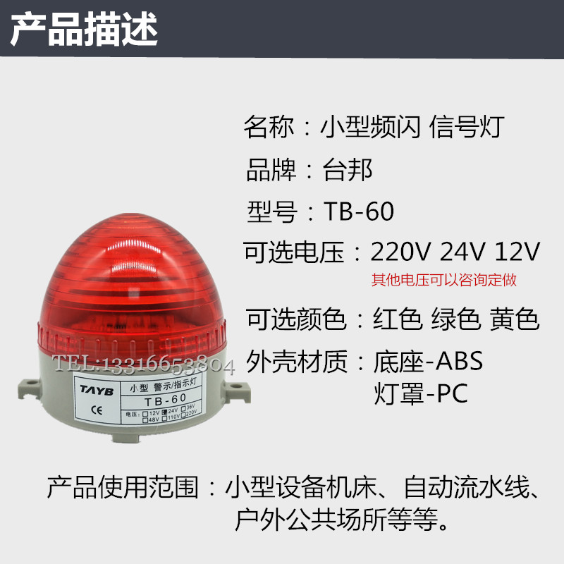 Small frequency flash indicating LED signal light TB-60 warning light LTE-3072 red-green and yellow 220v24v12v