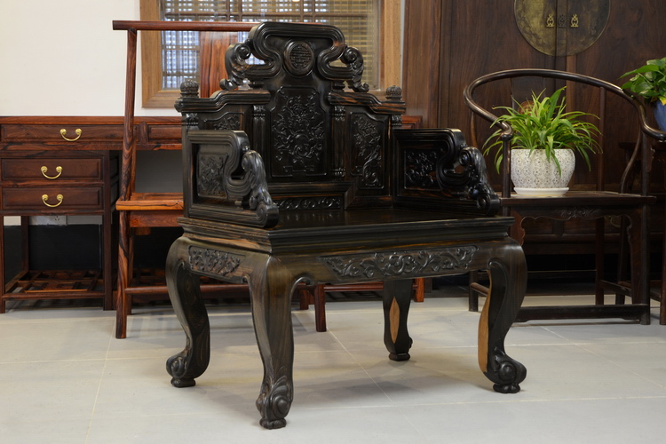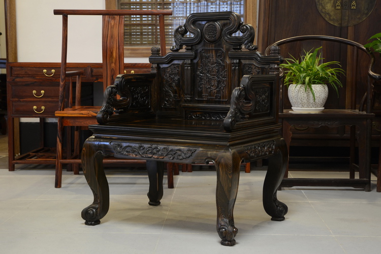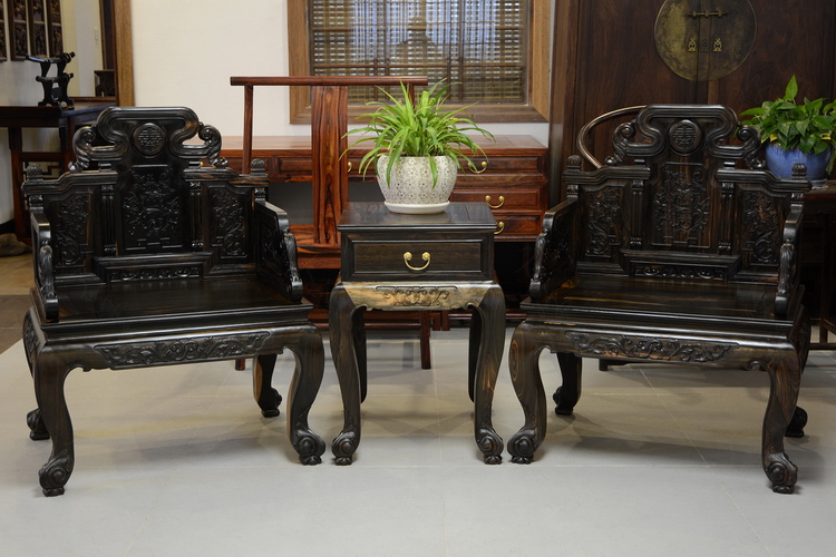 Dongxing red wood furniture Utattooing wooden throne striped Umu small throne three sets (spot E1262) -Taobao