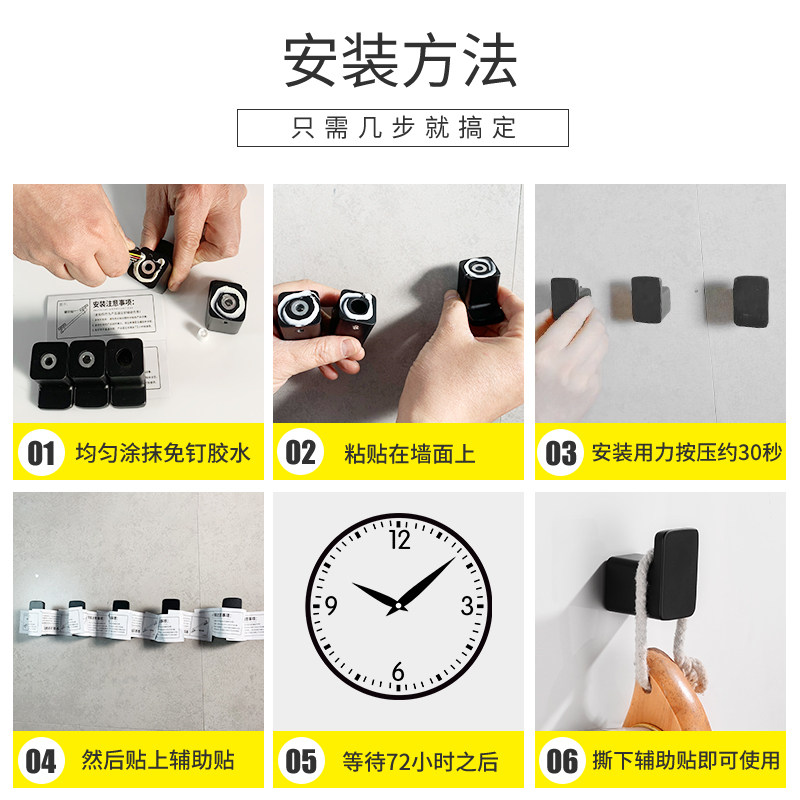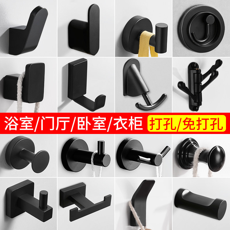 Wardrobe Hangover Hook Black Single Punch-Free Wall-mounted Wall Dressing Room Cloakhood Hook Toilet Towel Clothes Hook