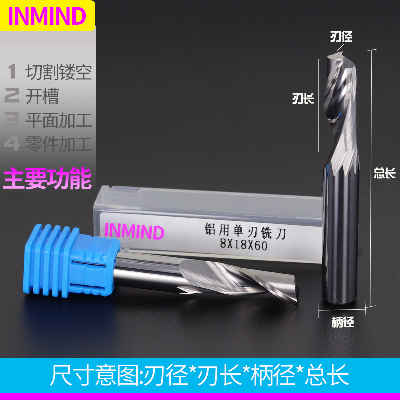 Aluminum milling cutter tungsten steel single-edged spiral end mill 8mm CNC engraving knife curtain wall imported alloy drilling tool