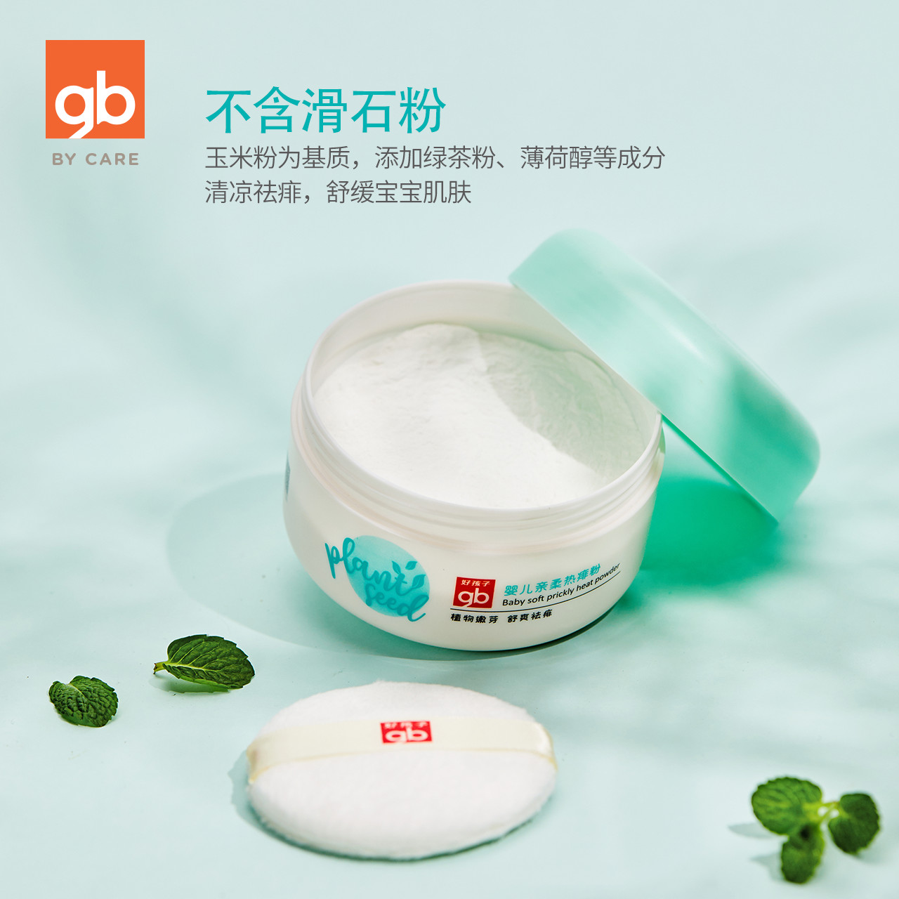 gb good child baby pro soft talk powder baby child cool dry anti-prickly heat heat powder with puff 100G