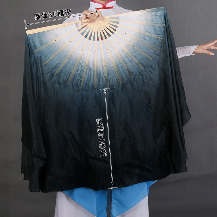 Silk square dance fan Jiaozhou Yangko dance fan black is dyed gradient ink calligraphy classical dance silk fan