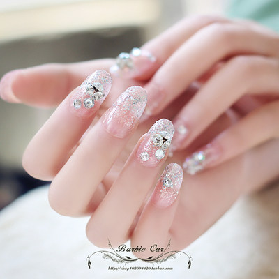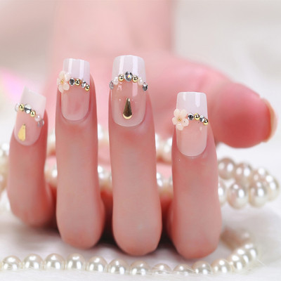 Ready-to-wear nail art medium and long version of fake nail patch Wearable disassembly Bridal wedding diamond-set nail piece finished product