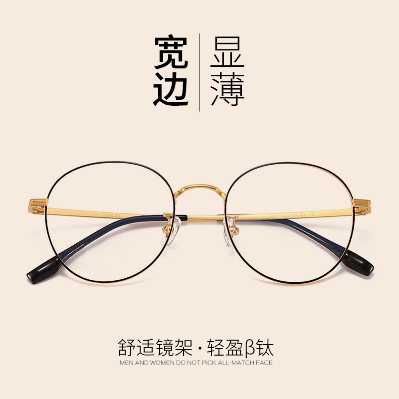 2019 ultra light pure titanium gold wire near view eye mirror female round frame flat can be equipped with degree anti-blue light radiant eye frame man