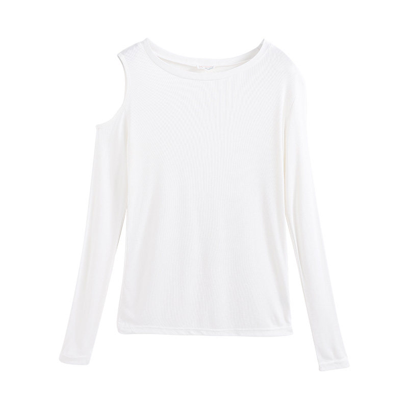 The hot girl wears a ride moodeir long sleeve inner lap for women's spring and autumn season 2021 new open-shoulder t-shirt with 100 hitch blouses