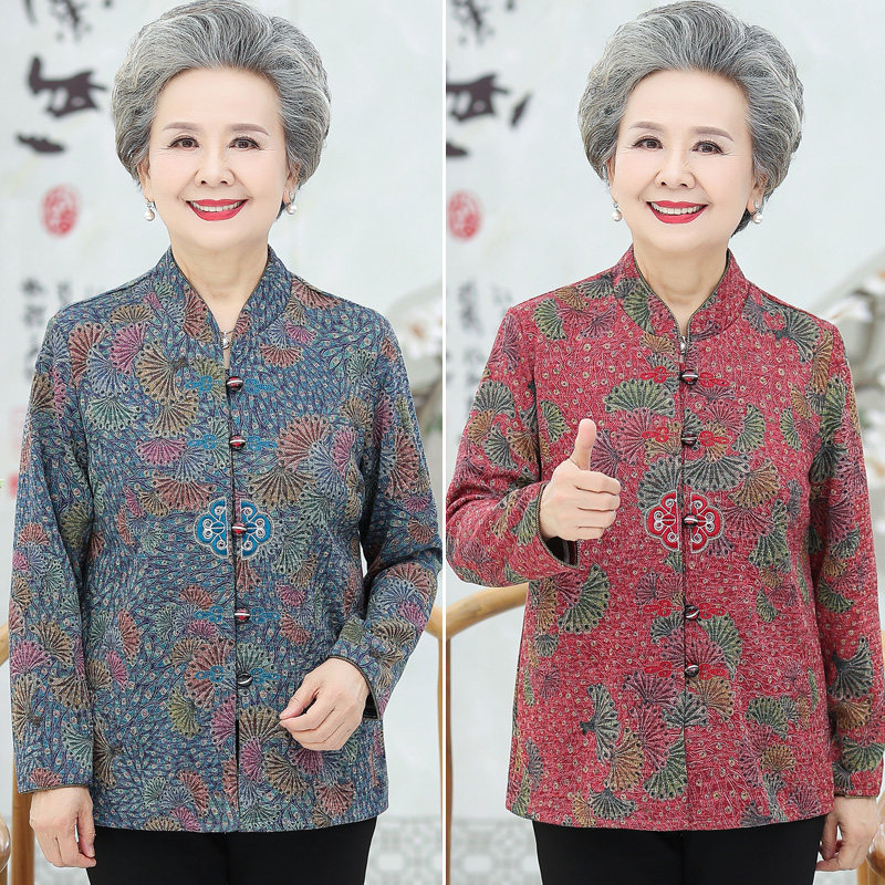 Middle - aged old woman autumn grandmother dressed up in a tailor - dressed shirt 60 years old mother Spring - Autumn elderly woman coat