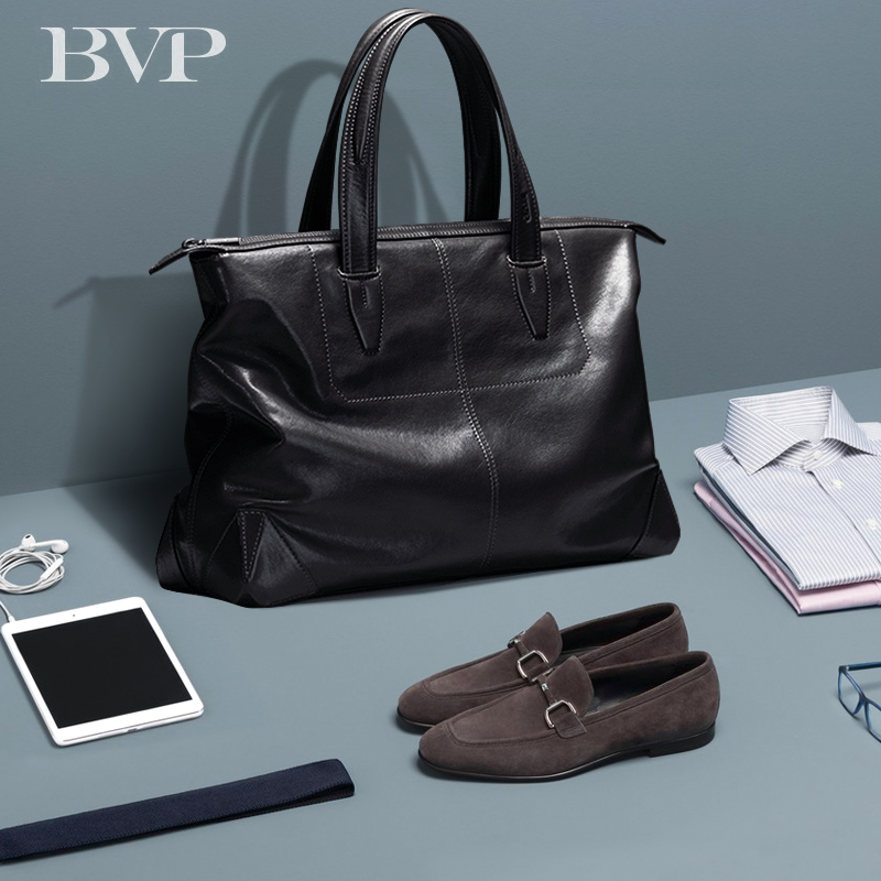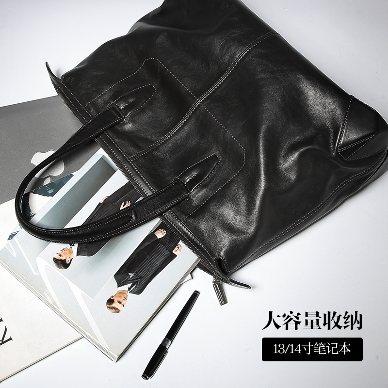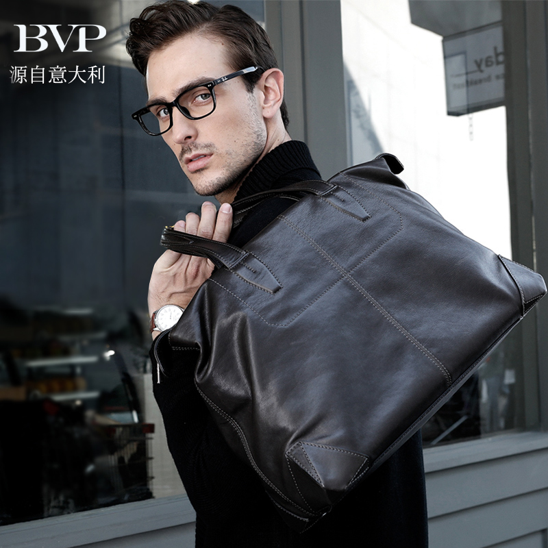 BVP tote bag men's business briefcase men's genuine leather casual leather bag shoulder bag short trip travel men's bag
