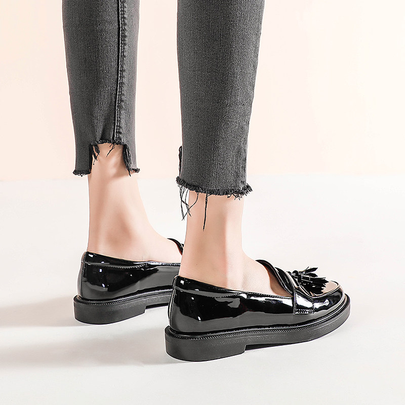 Trendy brand 2022 new British style black leather shoes women's shoes all-match flat beanie shoes women's single shoes trendy shoes - Taobao