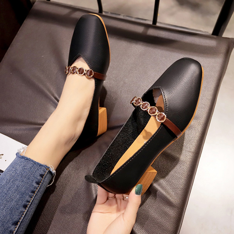Trendy brand 2022 spring and summer new mid-heel bag shoes women's shallow mouth grandma shoes all-match Korean version of beanie shoes net red shoes women