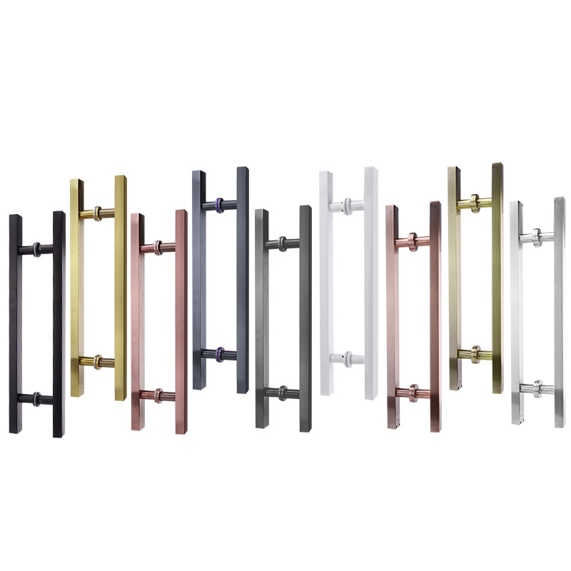 Thickened stainless steel matt black baking lacquered square pipe handle glass door wooden door rose gold big handle big door handle-Taobao