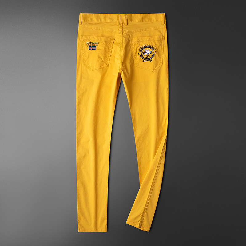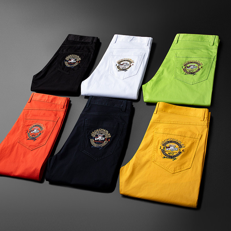 Summer New Green Casual Pants Men's Body Slim Fit Soft Breathable Men's Fashion Embroidered Colorful Pants Male Tide