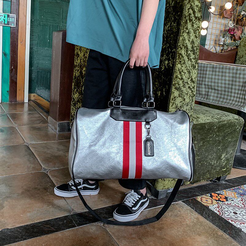 Hong Kong leather travel bag women's leather hand luggage bag large-capacity lightweight sports men's fitness shoes bag