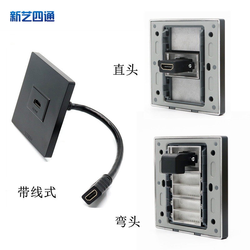 Black 86-type panel HDMI high-definition socket elbow corner right angle 90 degrees hdmi solder-free straight-through with extension cable
