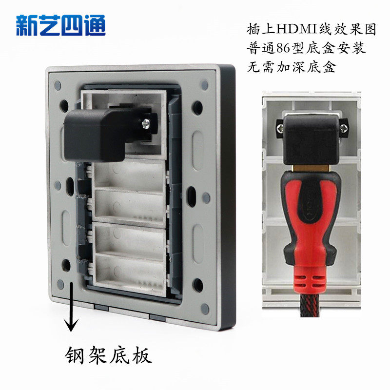 Type 86 black HDMI high-definition socket elbow right-angle plug computer TV 2 0 version 4k transmission line panel socket