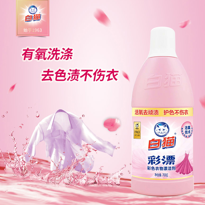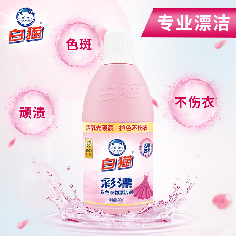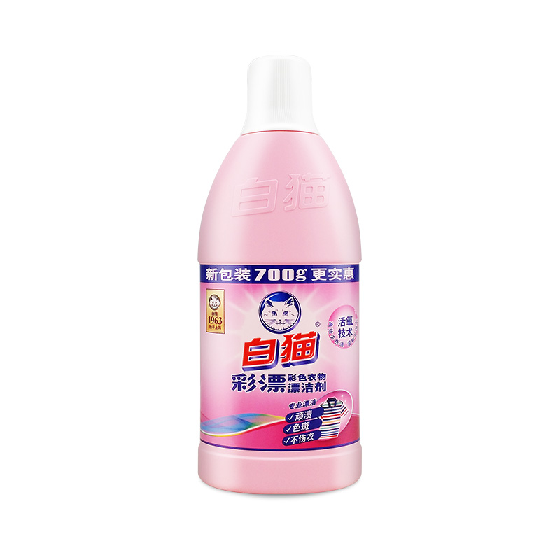 White cat color bleach 700g color clothing bleach to remove fruit stains, soy sauce stains, sweat stains, milk stains, blood stains, color stains